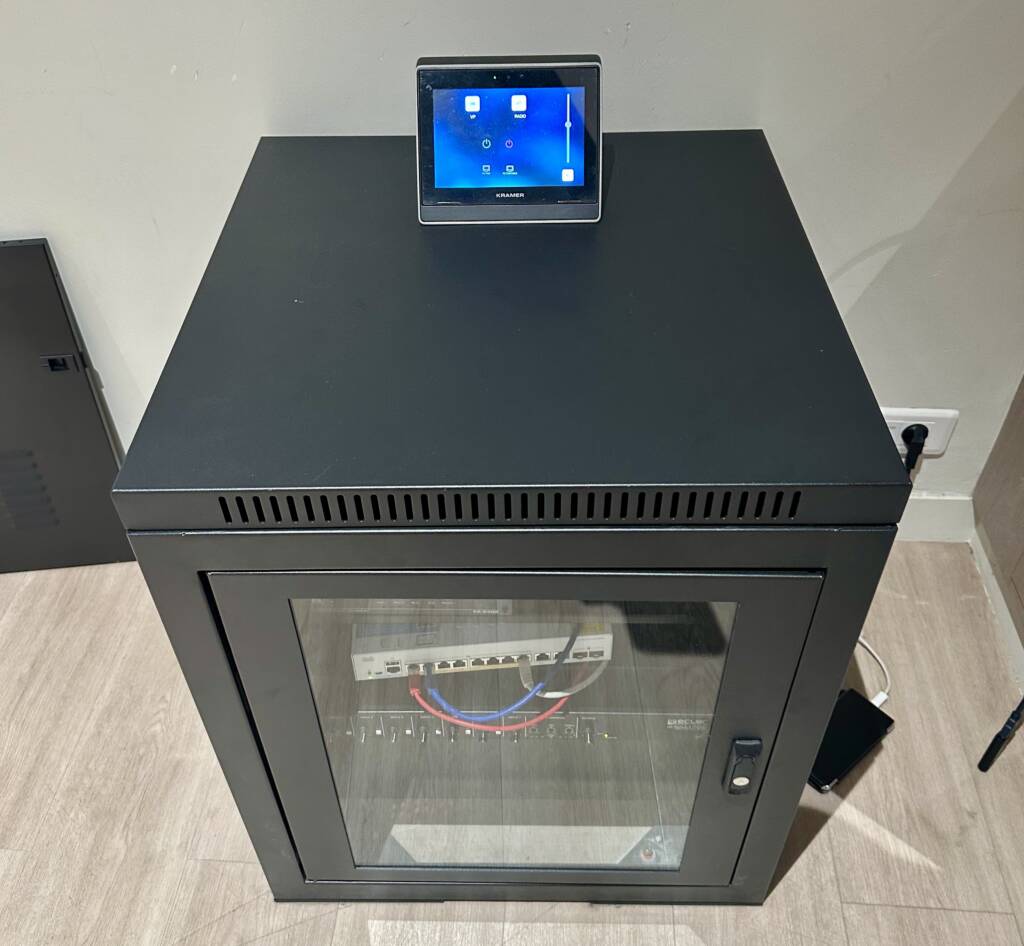 Pour optimiser cet environnement, une tablette de contrôle équipée du système Impéria TANGO permet une gestion intuitive des équipements audiovisuels, incluant la sonorisation.