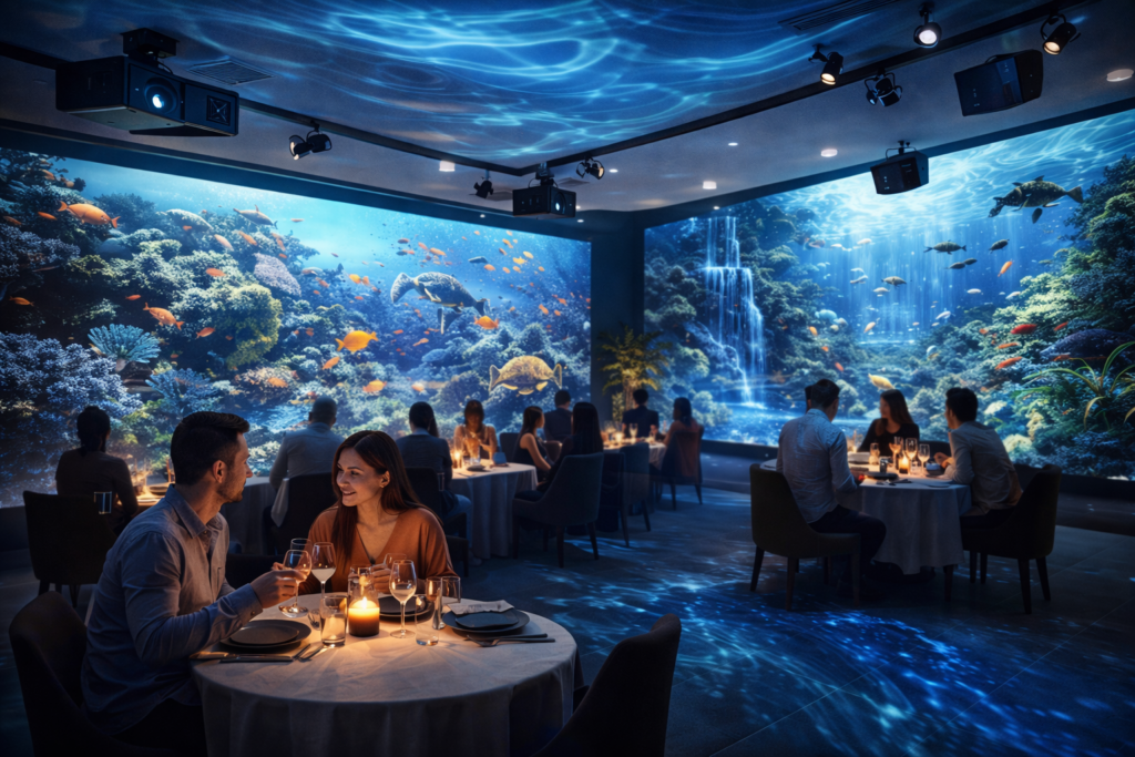 Dans le secteur de la restauration, l’immersion visuelle et sonore transforme un repas en véritable expérience. AVLS France conçoit des salles et espaces immersifs qui renforcent l’identité du lieu, créent une ambiance unique et captivent les clients dès leur entrée.